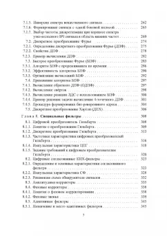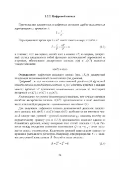 Рассматривается обобщённая схема цифровой обработки аналогового сигнала, понятие режима реального времени, понятие нормированного времени, изучаются типовые дискретные сигналы. Дано описание линейных дискретных систем (ЛДС) во временной области: свойства, условия физической реализуемости, разностные уравнения, рекурсивные и нерекурсивные ЛДС. Приводится пример экспресс-анализа частотных характеристик, устанавливается взаимосвязь между временными, операторными и частотными характеристиками ЛДС. Изучается арифметика и квантование чисел в цифровых системах. Даются основы цифрового спектрального анализа. Исследуется дискретизация относительно узкополосных сигналов, преобразования спектра, изучается дискретное преобразование Фурье. Изложен принцип организации многоскоростной обработки сигналов: однократных и многократных систем децимации и интерполяции, а также способы реализации интерполяторов и дециматоров. Изучаются методы компандирования речевых сигналов.