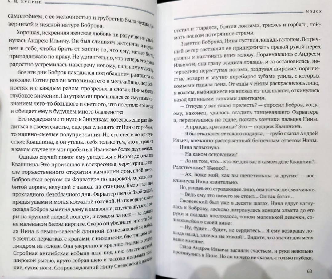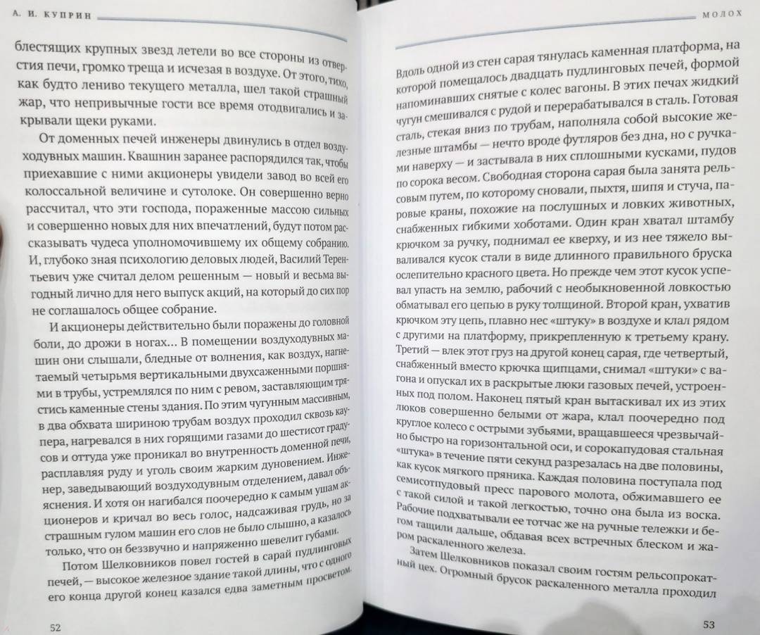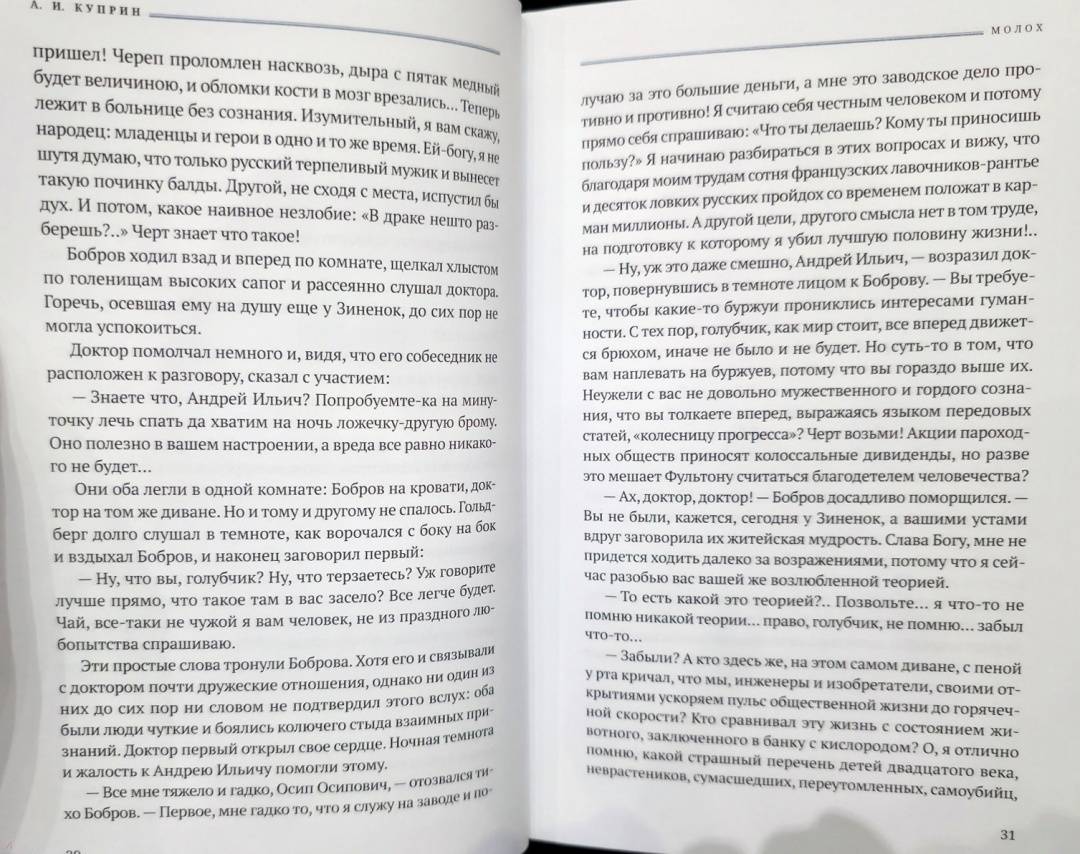 Отличное издание для домашней библиотеки классики в расчете не на одно поколение! Четкий шрифт, белая бумага, закладка - всё на высоком уровне, так что немалая цена кажется уместной. Что касается текстов Куприна, то этого автора не зря считают классиком, пусть и второго ряда (в сравнении с Толстым, Чеховым и т.д.).