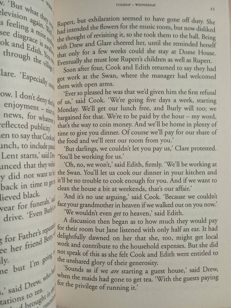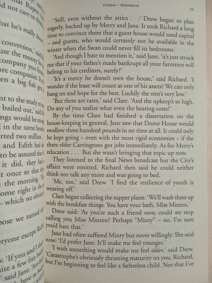However, the private world of Dome House is fated to break up as Rupert flees England under threat of prosecution for fraud. He asks Jane to break the news to the children, who must now fend for themselves, and to do what she can to help them. However, the Carringtons are extremely unusual young people and the story of the eclectic choices they make next is an absorbing and unpredictable one.