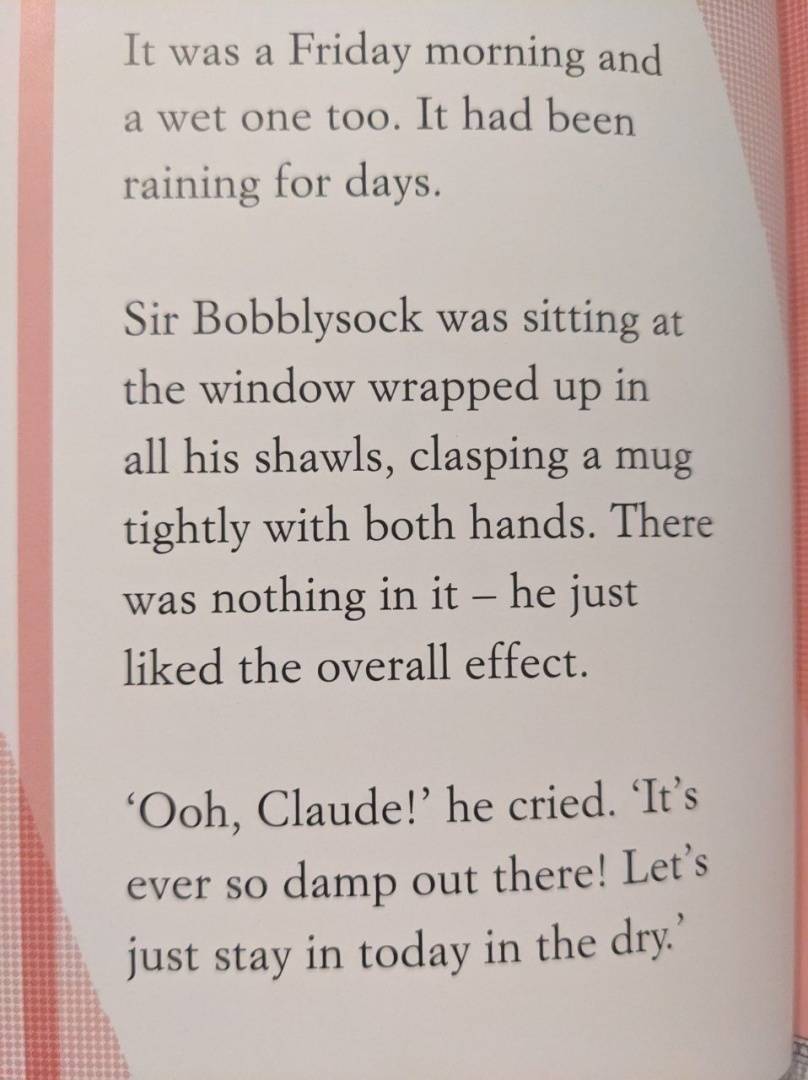 Клод — невысокий, пухлый пес, носит берет и красный джемпер. Вместе со своим лучшим другом сэром Бобблисоком они отправляются в приключения. Клод — умный и находчивый пес. Книги прекрасно иллюстрированы и весело написаны. Моя дочь, которая скоро перейдет в детский сад, от этих книг в восторге - и я тоже. Стоит прочита...