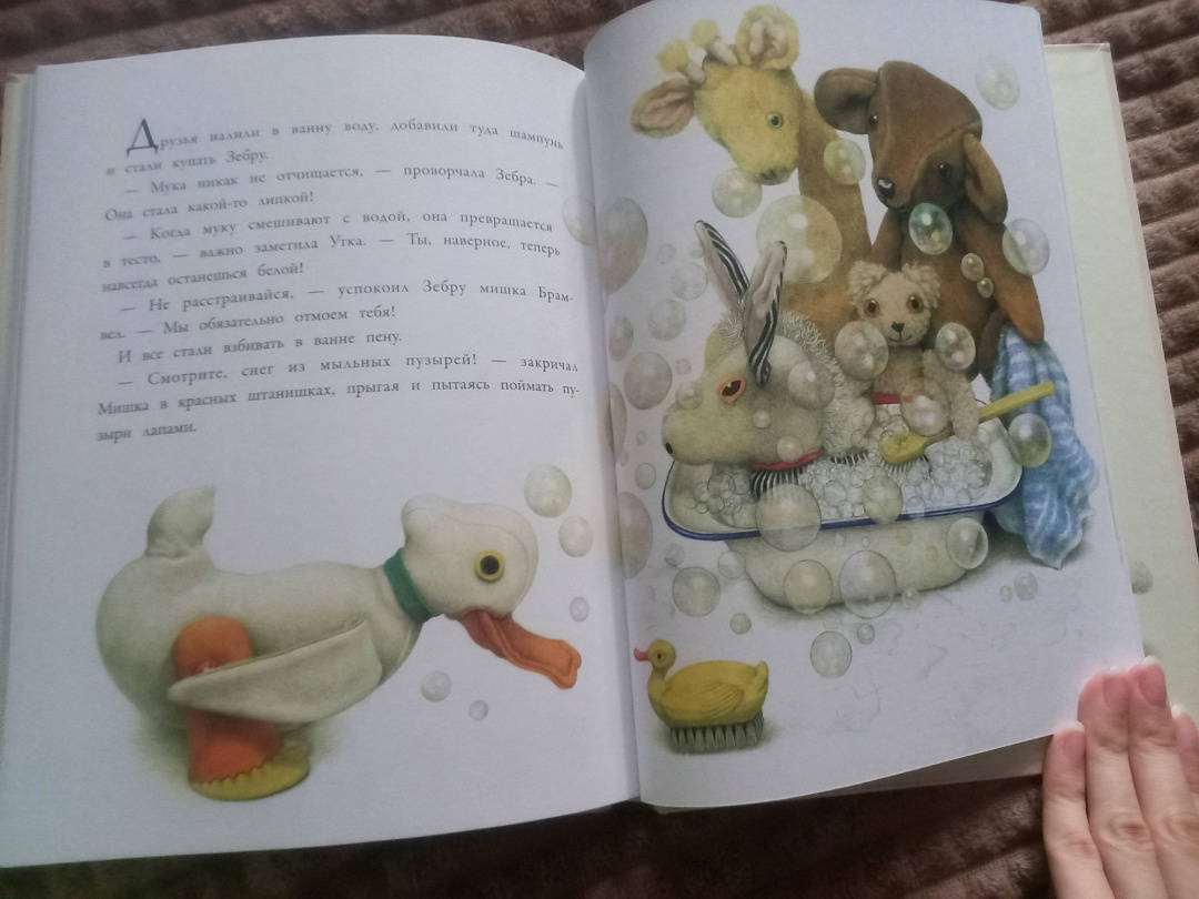 Книга наимилейшая, просто прелесть какие иллюстрации! Дети долго гадают, это нарисовано или фото, потому что мягкость игрушек буквально бросается в глаза и кажется, они как настоящие. Мягкость будто ощущается на ощупь. Текста не много, для самых маленьких, добрые и тёплые истории