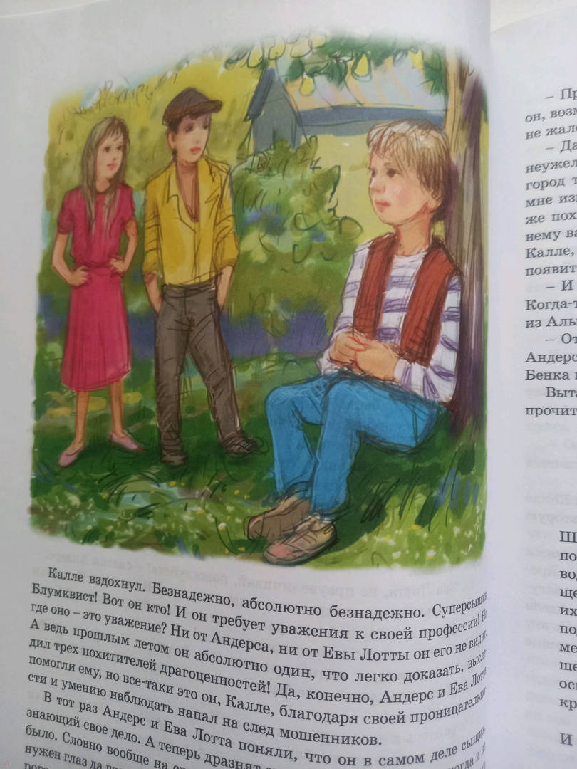 Астрид Линдгрен неподражаемая сказочница, и переводы её произведений прекрасные у нас. Пользуемся этой возможностью хорошо провести время и заеупаемся её книгами, да ещё и с цветными иллюстрациями. Вторая часть про изобретательных сыщиков придётся по душе всем любителям приключений и детективов