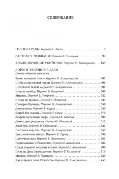 «Трумен Капоте — стилист высочайшего класса… надежда современной литературы», — писал Сомерсет Моэм. А Норман Мейлер говорил: «Трумен Капоте — лучший писатель нашего поколения, — и добавлял: — В “Завтраке у Тиффани” я не изменил бы ни слова, этой книге суждено стать классикой». В данный том входят и «Завтрак у Тиффани» (самое знаменитое произведение Капоте, прославленное в 1961 году экранизацией с Одри Хепберн в главной роли), и лирическая повесть «Голоса травы», и монументальный роман «Хладнокровное убийство», основанный на истории реального преступления и породивший новый жанр «романа-репортажа», и полное собрание рассказов этого выдающегося мастера американской литературы XX века.