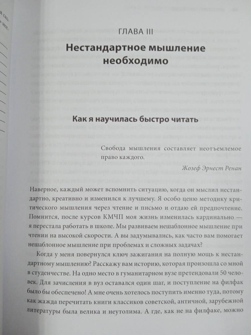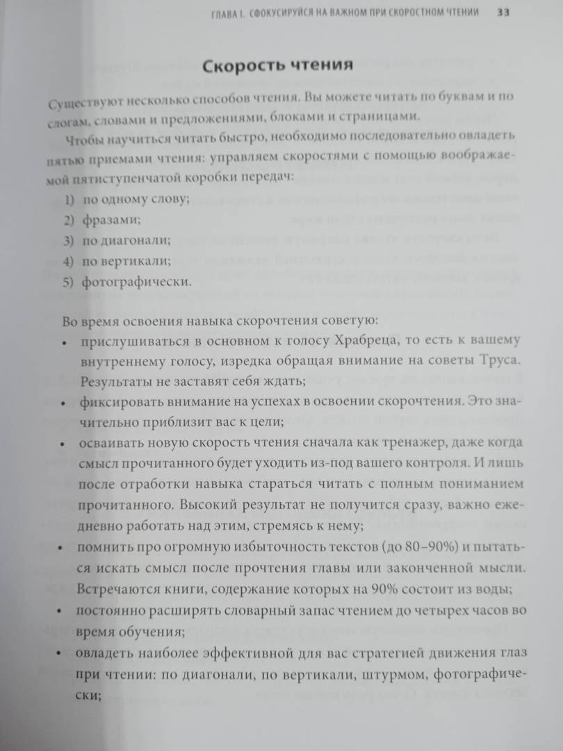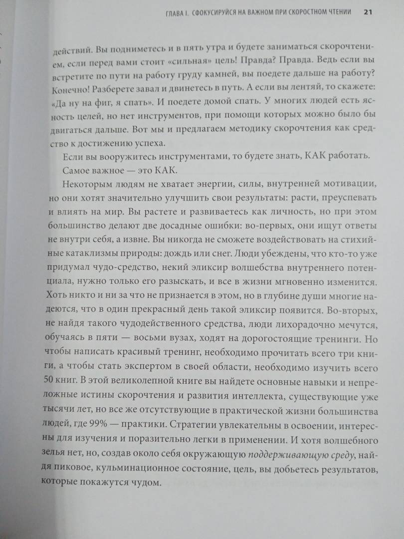 Давно мечтала освоить скорочтение много искала материалов. И как хорошо что мне попалась эта книга. Книга настоящий концентрат того что нужно и важно знать о скорочтении. Даже выполняя задания дома по 30-40 минут в день уже увидела результаты. Никогда мое чтение не было таким приносящим удовольствие как сейчас. КТо не...