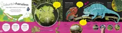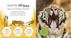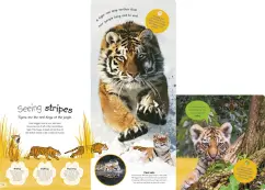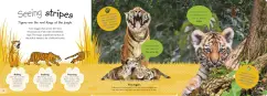 Kids can get up close with zoomed-in images focusing on smaller details such as a chameleon's scales, and lift the flaps to watch a tigress with her cubs running towards them across the page.