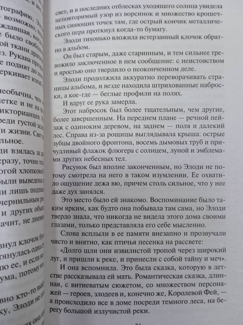 Трущобы викторианского Лондона не самое подходящее место для юной особы, потерявшей родителей. Однако жизнь уличной воровки, казалось уготованная ей судьбой, круто меняется после встречи с художником Ричардом Рэдклиффом. Лилли Миллингтон - так она себя называет - становится его натурщицей и музой. Вместе с компанией друзей влюбленные оказываются в старинном особняке на берегу Темзы, где беспечно проводят лето 1862 года, пока их идиллическое существование не рушится в одночасье в результате катастрофы, повлекшей смерть одной женщины и исчезновение другой… Пройдет больше ста пятидесяти лет, прежде чем случайно будет найден старый альбом с набросками художника и фотопортрет неизвестной, - и на события прошлого, погребенные в провалах времени, прольется наконец свет истины. В своей книге Кейт Мортон, автор международных бестселлеров, в числе которых романы "Когда рассеется туман", "Далекие часы", "Забытый сад" и др., пишет об искусстве и любви, тяжких потерях и раскаянии, о времени и вечности, а также о том, что единственный путь в будущее порой лежит через прошлое.
