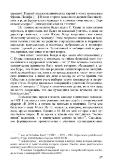 Себастиан Курц - одна из самых ярких и в то же время самых противоречивых фигур в европейской политике. Политик, который заставил говорить о себе прессу и общественность Старого света. Кем же в действительности является С. Курц? Вундеркиндом или же популистом, вступившим ради достижения власти в союз с крайне правой Австрийской партией свободы? В монографии будут освещены такие вехи его биографии, как становление личности, начало политической карьеры в Вене, первый канцлерский срок, "ибица-гейт" и "второе пришествие" на пост главы правительства.