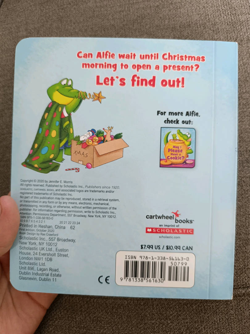 It's Christmas Eve-almost time to open presents! But Alfie just can't wait any longer. Could he, pretty please, open his presents now? Read along with Alfie and laugh along with his hilarious attempts to convince his mom that he should be allowed to open presents! A tender twist at the end makes this a perfect holiday story to share.
