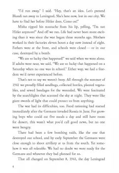 But Ivan underestimates Axel's attachment to Zasha and Thor, and soon finds himself being hunted by a ruthless soldier who will stop at nothing to get his dogs back. As World War II rages around them, Ivan must find a way to hide from Axel, protect Zasha and Thor, avoid the constant barrage of deadly bombings, and survive in the devastating conditions of a city cut off from the world.