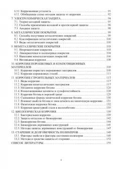 Представлено обобщение знаний о коррозионном учении в целом, об особенностях и закономерностях протекания химической и электрохимической коррозии, важнейших видах коррозии и способах защиты материалов и конструкций от коррозии. Рассматривается понятие коррозии, виды коррозии и типы разрушения, особе
