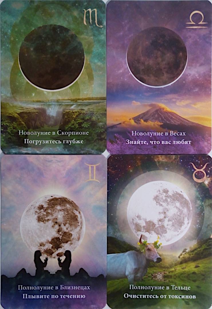 Луна - наш неизменный спутник на протяжении тысячелетий. Она побуждает нас использовать возникающие возможности и помогает избавляться от любых рамок и оков. Эти замечательные карты с предсказаниями помогут сформулировать ваши желания и научиться притяг