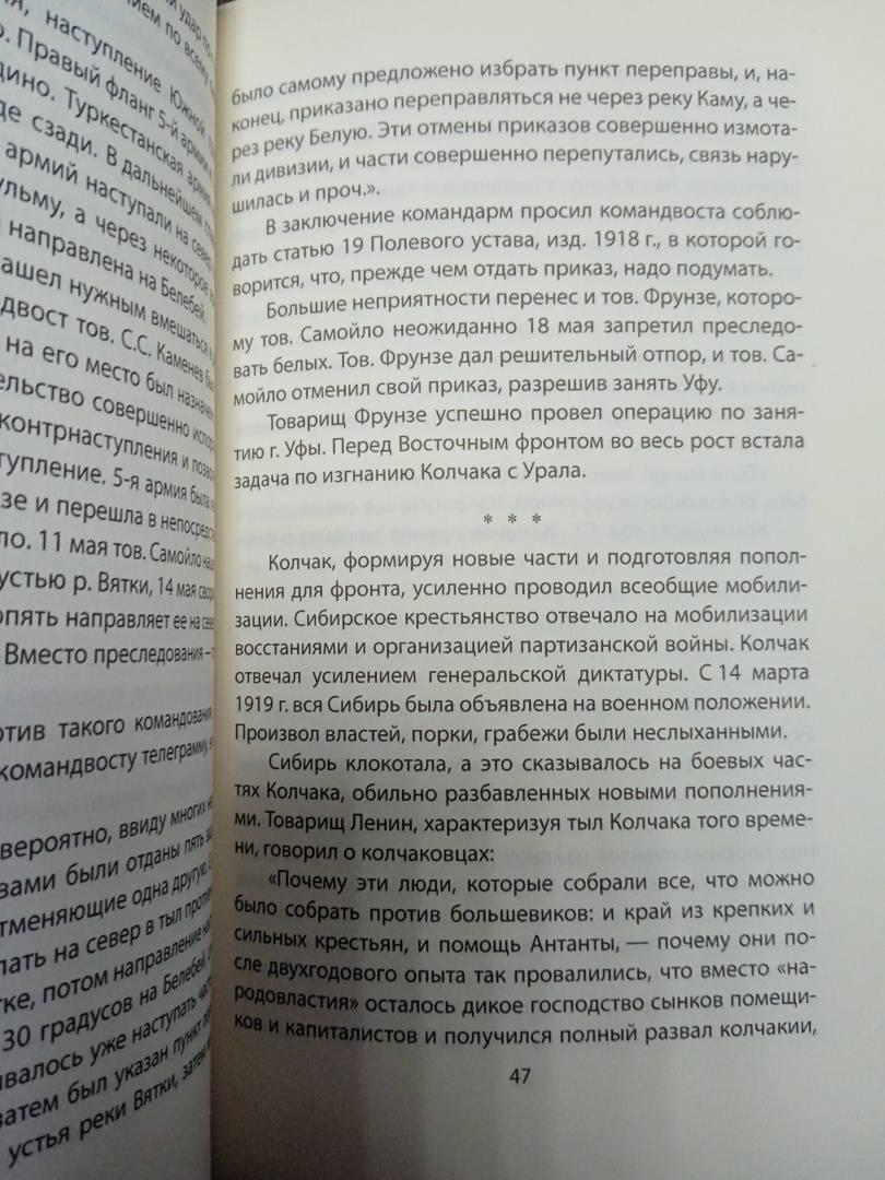 В своей книге М.Н. Тухачевский рассказывает о боях с Колчаком, об особенностях действий Красной Армии в это время, начиная от серии мелких ударов ("война клопов") до широкомасштабных наступательных операций. Опыт Гражданской войны служит ему для извлечения уроков по стратегической и тактической подготовкам РККА, в т.ч. по отдельным родам войск - пехоте, артиллерии, механизированным соединениям, военно-инженерным войскам и прочим.