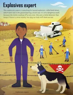 From secret agents and paratroopers to firefighters and lifeguards, see what the everyday action heroes wear to work. There are over 200 stickers to dress brave men and women for tough challenges and extreme environments, from camouflage clothing for paratroopers to a space suit for an astronaut and diving equipment for a cave rescue team.