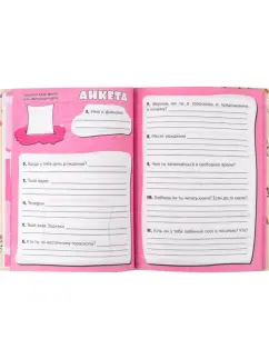 Анкета для друзей - оригинальный, стильный и яркий способ узнать все интересы и увлечения близких подруг. Анкета содержит множество вопросов о хобби, увлечениях, вкусах друг друга. В анкете есть вопросы о знаках зодиака, месте рождения, любимых книгах и фильмах, домашних животных и многое другое. Модель имеет твёрдый переплёт, который сохранит опрятный внешний вид на долгое время. Цветная мелованная обложка, украшенная глиттером.