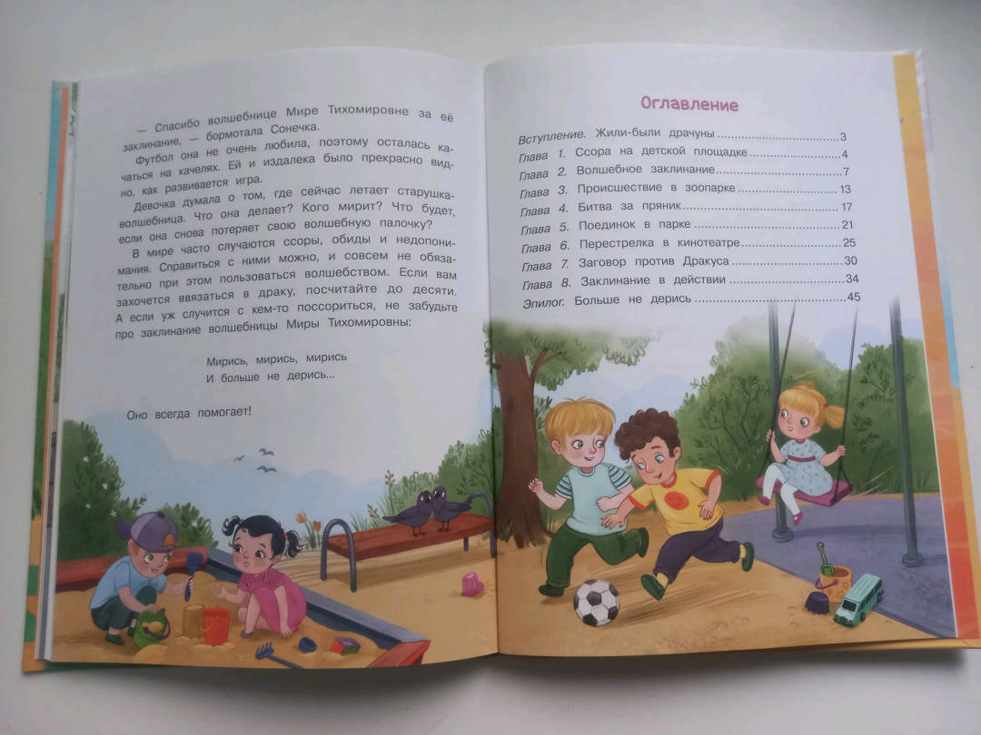 Отличная книга для всех детей дошкольного возраста, ведь ссоры и драки так часты у импульсивных, не сдержанных деток. История в нескольких главах преподнесёт необходимые уроки, а яркие иллюстрации оживёт чтение. Качественная книга, листы плотные, белые