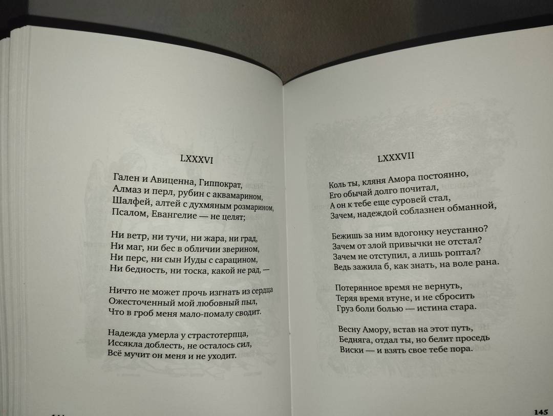 Впервые на русском языке издается полный свод лирики поэта, включая стихи из "Декамерона", в новых переводах Александра Триандафилиди и Владимира Ослона. Также в издание включена поэма "Охота Дианы". Книга проиллюстрирована гравюрами французского художника XIX века Тони Жоанно (1803-1852).