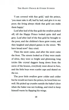 The Happy Prince and Other Tales is a collection of five stories: ‘The Happy Prince’, ‘The Nightingale and the Rose’, ‘The Selfish Giant’, ‘The Devoted Friend’, and ‘The Remarkable Rocket’. The Happy Prince stars the statue of the Prince, who persuades a swallow to deliver his gold and jewels to the poor and needy in his city.