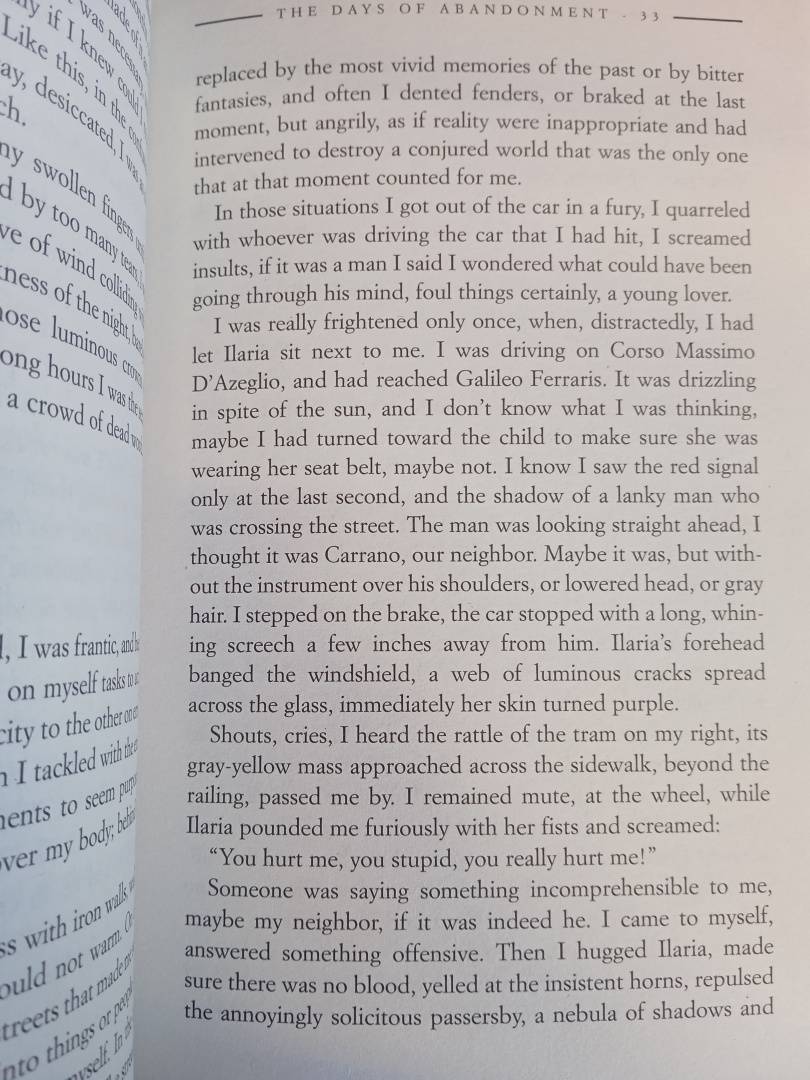Rarely have the foundations upon which our ideas of motherhood and womanhood rest been so candidly questioned. This compelling novel tells the story of one woman’s headlong descent into what she calls an “absence of sense” after being abandoned by her husband. Olga’s “days of abandonment” become a desperate, dangerous freefall into the darkest places of the soul as she roams the empty streets of a city that she has never learned to love. When she finds herself trapped inside the four walls of her apartment in the middle of a summer heat wave, Olga is forced to confront her ghosts, the potential loss of her own identity, and the possibility that life may never return to normal again.