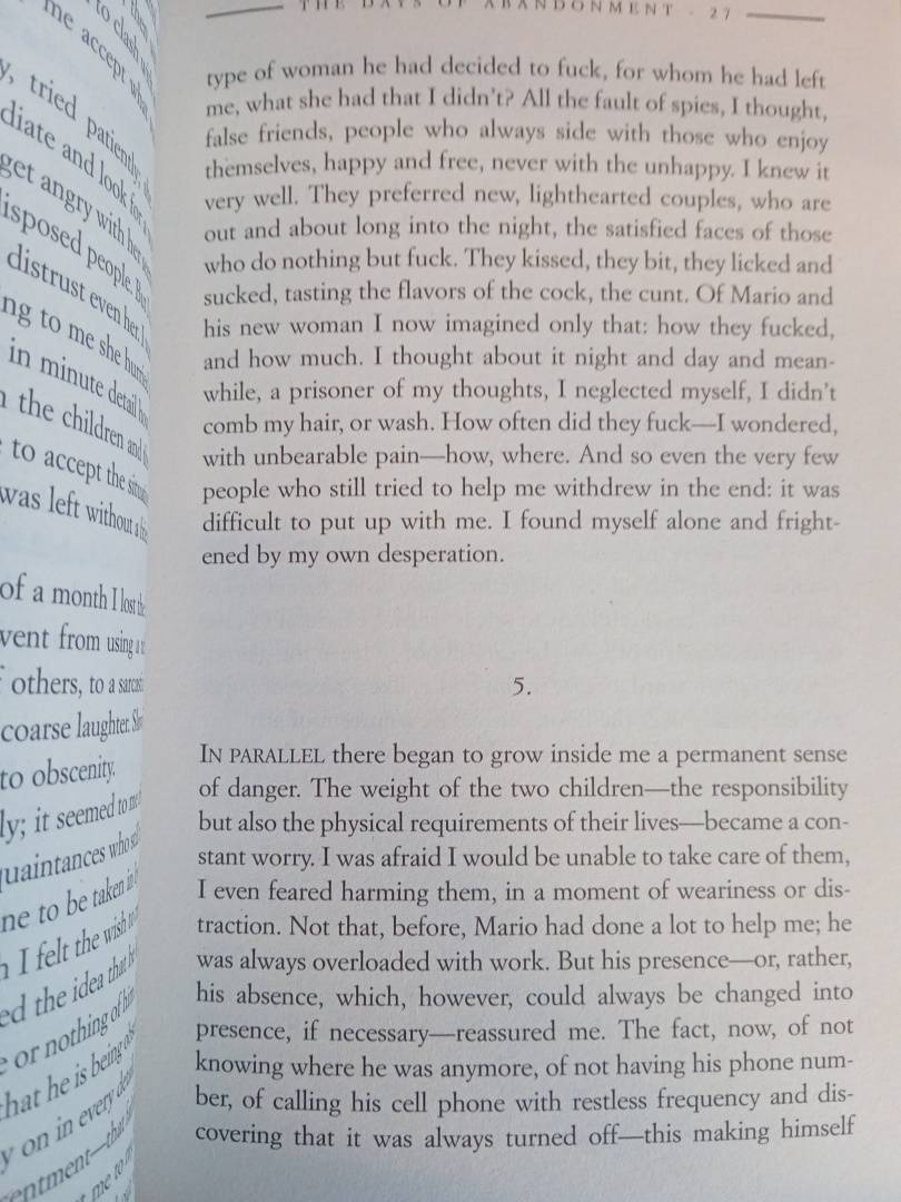 Rarely have the foundations upon which our ideas of motherhood and womanhood rest been so candidly questioned. This compelling novel tells the story of one woman’s headlong descent into what she calls an “absence of sense” after being abandoned by her husband. Olga’s “days of abandonment” become a d