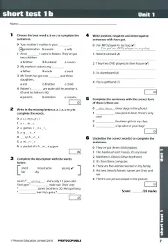 Буклет содержит различные виды тестов для оценки успеваемости студентов, такие как: вступительный тест, тесты, проводимые в середине и конце года, короткие тесты, тесты для проверки языковых навыков, навыков говорения и письма.