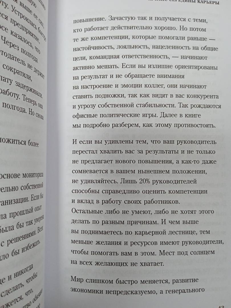 Дочитала книгу вчера, до сих пор раскладываю в голове по полочкам некоторые моменты. Автор отлично знает корпоративную культуру, тонко разбирается в ведении бизнеса, карьерном развитии. Рекомендую людям с большим стажем работы, наверняка почерпнете для себя много полезного.