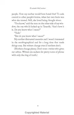 The woman, a writer, recalls all that made her complicated mother extraordinary - her brilliant wit, her generosity, her unbelievable obstinacy, her sheer will in seizing life despite physical difficulties - and finds herself wondering how her mother had endured. Even though she wants to respect her mother's nearly pathological sense of privacy, the woman must come to terms with whether making a chronicle of this remarkable life constitutes an act of love or betrayal.