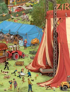 Schon am Morgen steht die Stadt Kopf, denn: Der Zirkus reist an! Dieses Spektakel sollte sich keiner entgehen lassen! Nach dem Zeltaufbau mit Hindernissen proben Seiltänzer, Clowns und Jongleure. Schließlich heißt es: Manege frei! Die Vorstellung beginnt! Und nach dem großen Finale geht der Zirkus schlafen… Dieses Wimmelbuch fängt die schillernde Welt des Zirkus ein. Wir blicken vor und hinter die Kulissen, beobachten Artisten und Zirkustiere und lassen uns erzählen von kleinen und großen Abenteuern im Zirkusalltag. Kleine Kinder betrachten jedes Bild in seiner detailreichen Fülle für sich, ältere suchen und finden die Zusammenhänge der Wimmelgeschichte. Das beliebte Pappbilderbuch im großen Format.