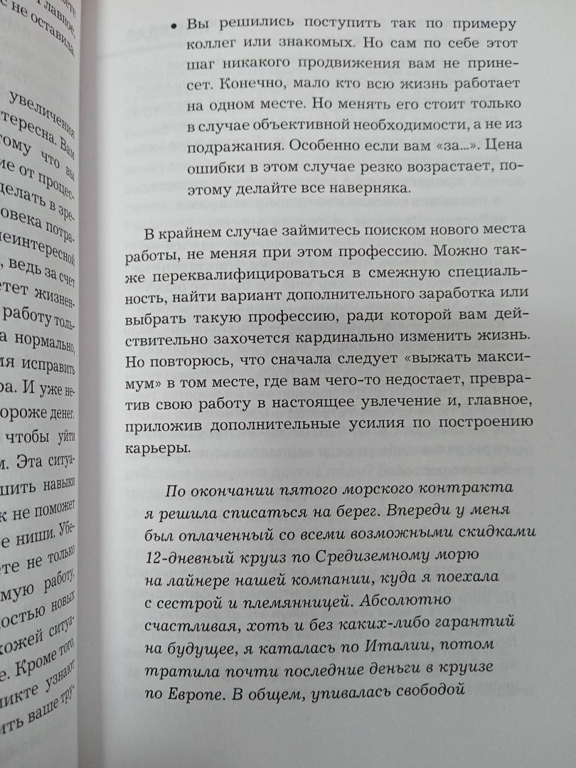 «Можно годами строить карьеру стихийно, но так и не добиться результата. А можно вооружиться правильными инструментами, грамотно их применить и быстро прийти к успеху. И к чему бы вы ни стремились — занять руководящую позицию или стать ценным экспертом на рынке — в этой книге найдется все необходимое. Мария Батти подробно расскажет о том, как добиться впечатляющих рабочих результатов: от поиска подходящего варианта до выстраивания эффективных взаимоотношений в коллективе и повышения авторитета в компании». — Валерия Волкова, профориентолог, карьерный консультант, автор книги «Дело по душе»