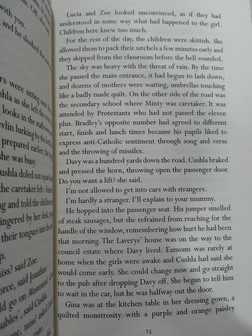 As people get up each morning and go to work, school, church or the pub, the daily news rolls in of another car bomb exploded, another man beaten, killed or left for dead. In the class Cushla teaches, the vocabulary of seven-year-old children now includes phrases like `petrol bomb` and `rubber bullets`. And as she is forced to tread lines she never thought she would cross, tensions in the town are escalating, threatening to destroy all she is working to hold together.