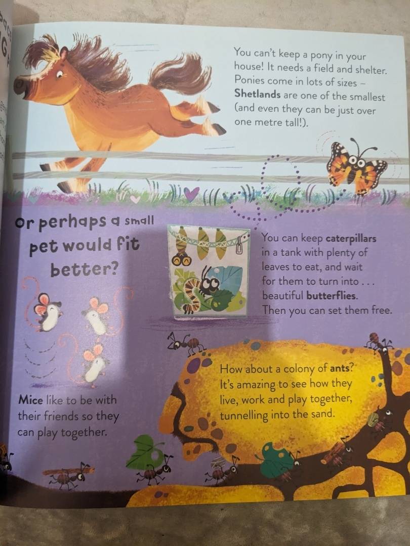 In this fun, interactive book, you can find all of these sorts of pets and more. Kids are invited to get involved and choose which pets would be their favourite, with choices made even more entertaining by Anna Chernyshova’s cute, lively illustrations.