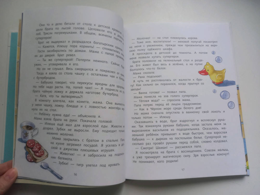 Книга очень понравилась, оказалась не тоненькой, рассказы про появление в жизни героини младшего братика раскрывают эту тему с самых различных сторон. Приятные, не бьющие в глаза иллюстрации рисуют незатейливый семейный быт весьма забавно, ведь он и выступает таким в тексте - он дан глазами ребёнка. Нам это близко, по...
