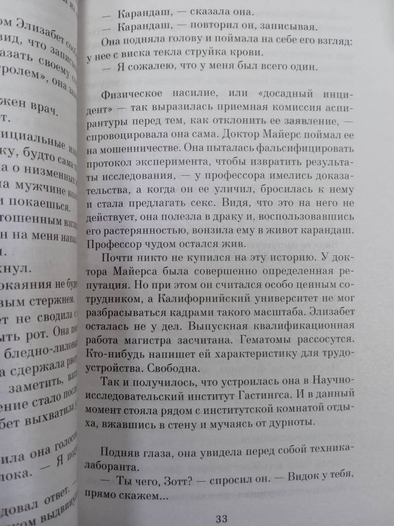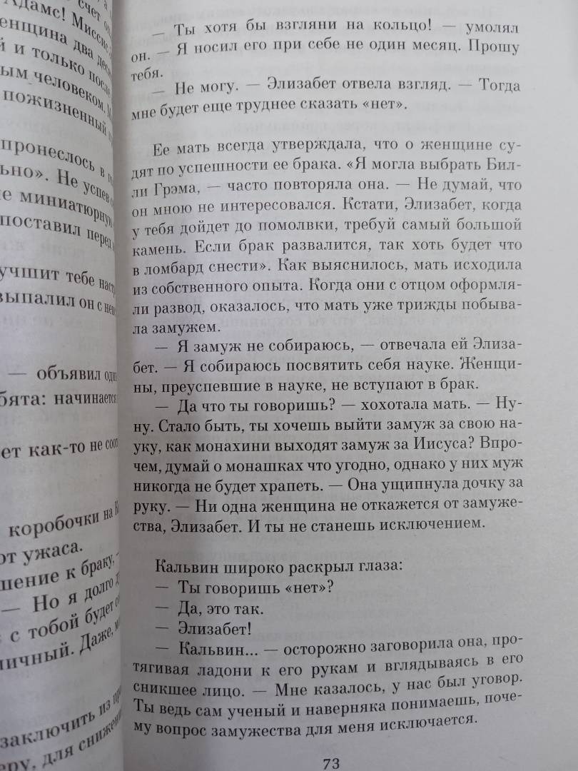 Как давно я не читала такой захватывающий истори! Замечательный роман о жизни женщины,которая хочет заниматься наукой вопреки отношению общества,которое считает,что это дело мужчин.Но судьба делает неожиданный поворот и на том отрезке жизни,который не самый счастливый для нее,Элизабет круто меняет род своих занятий...