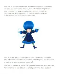 "Il était une fois une petite fille à qui sa grand-mère avait tricoté un long manteau bleu et une chaude chapka bleue, si bien que tout le monde l’appelait la 'Petite Fille bleue'." Ça vous rappelle quelque chose ? Une version originale du fameux conte, revisité dans les teintes froides et bleutées