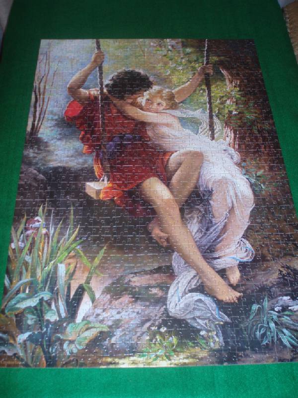 Одна из самый известный картин художника, написанная в 1873 году. Находится в частной коллекции во Франции. Если интересно, в интернете можно найти и другие работы Кота (которые так и просятся на пазлы!) в основном портреты и мифология.. Пазл замечательный, солнечный такой, собираются легко даже темные участки.