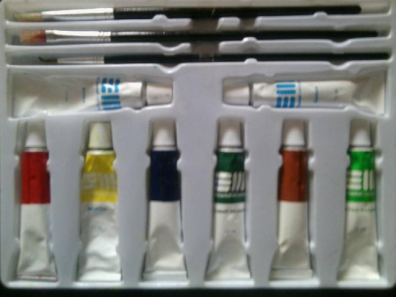 Довольно приличный набор. Краски - 8 тюбиков, 2 из них белые. Больше всего у нас ушло желтой, остатки на фото, можно не экономить, смешивать, пробовать. Рисовать достаточно просто, если неправильно случайно закрасить, сверху запросто новым слоем исправляется. Девочка 12 лет практически сама справилась. Возникла лишь о...