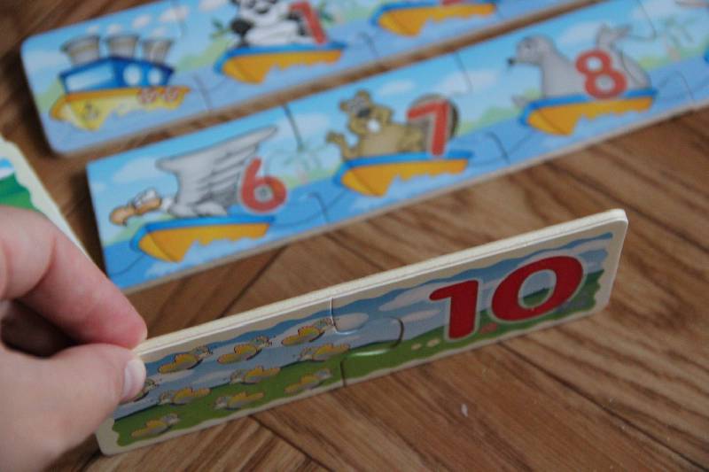 По качеству эти пазлы - просто выше всяких похвал. Никаких зазубрин, трещин и прочего, чем так часто грешат деревянные игрушки. Пазлы крепкие, походят друг к другу идеально, рисунки четкие, понятные, вполне адекватные. Брала ребенку чтобы закрепить счет и знание цифр. Справились с задачей отлично. Очень рекомендую все...
