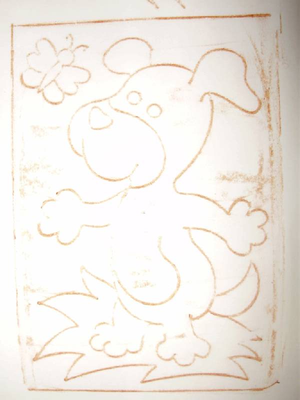 Очень забавная доска. С одной стороны рельефные трафареты 4картинки - котенок с бабочкой,котенок с корзинкой, щенок с бабочкой, лягушонок. С другой стороны доска ровная, поделенная на небольшие секции.