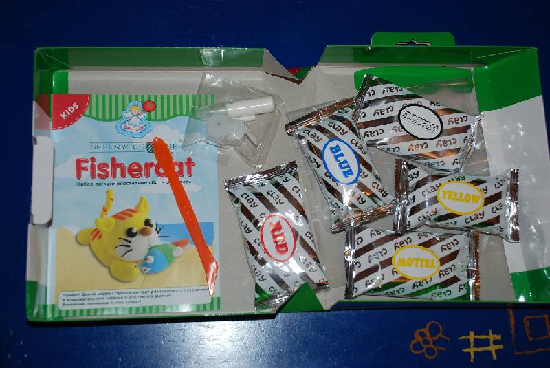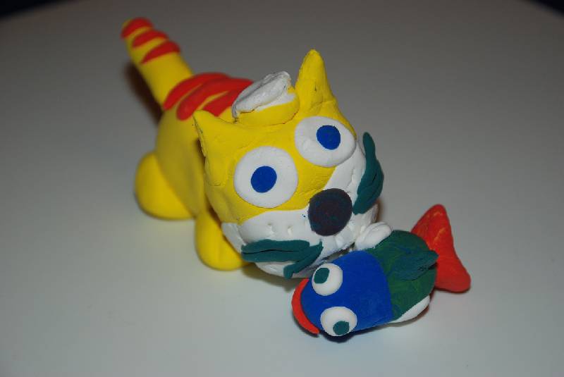 Пластилин мягкий, легкий, воздушный. Идея с механизмом замечательная! Но долго кот у нас не прожил - всё-таки фигурка не предназначена для активной игры.