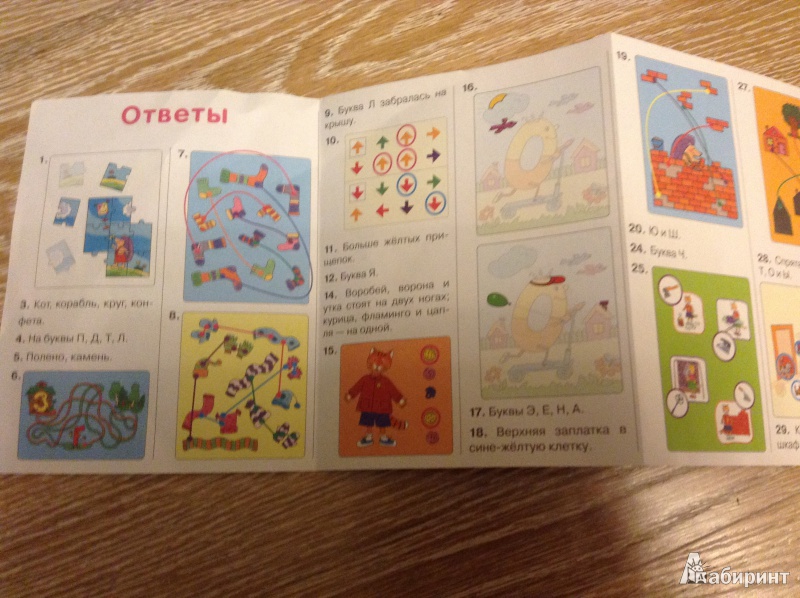 Набор состоит из 45 карточек, предназначенных для занятий с детьми от 3 лет. На одной стороне карточек даны занимательные задания-головоломки. Вооружившись карандашом, ребёнок пройдёт по запутанным лабиринтам, найдёт отличия в рисунках и ошибки художника, познакомится с буквами, решит логические зад