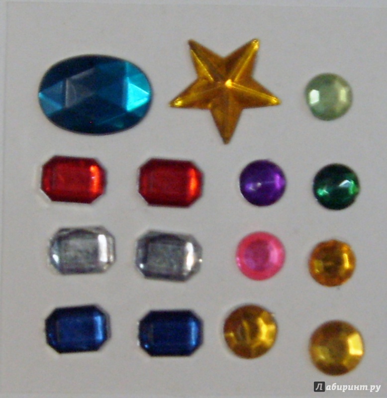 Также в комплект входят 12 разноцветных самоклеющихся пластин и 15 стразов ,которые согл...