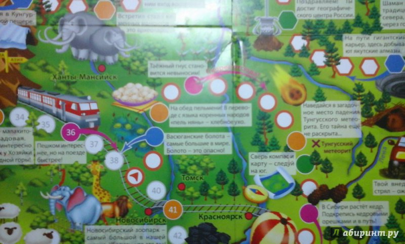 обалденная игра ходилка. Яркая, показаны все лучшее места в России. В комплекте идёт кубик и 4 фишки. Игу покупать стоит.