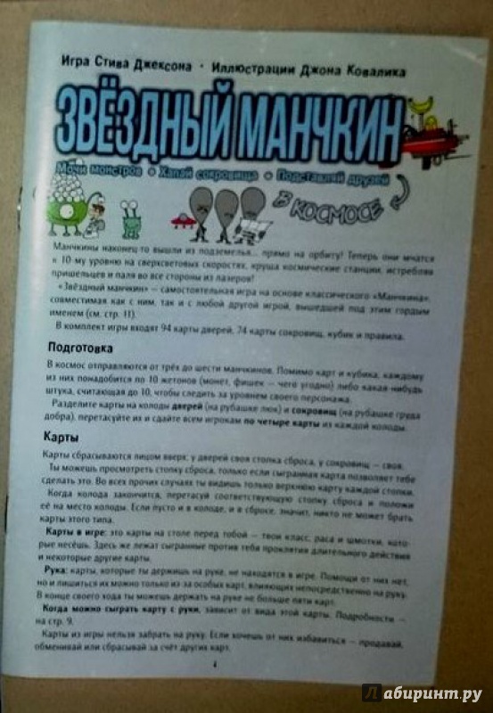 "Звёздный манчкин" - это полноценная отдельная игра по правилам "Манчкина" (с парой новых примочек вроде напарников). Да, её МОЖНО объединять с другими "Манчкинами"! И конечно, в ней гигатонны безудержного юмора Стива Джексона и безумных картинок Джона Ковалика.