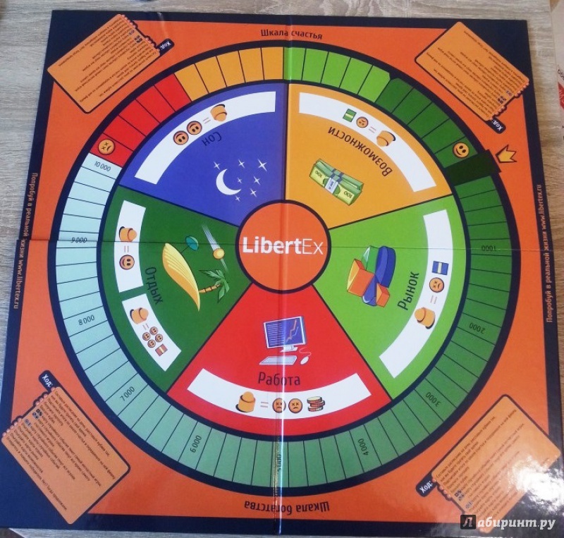Как и в реальной жизни, у нас есть всего 24 часа в сутках, так и в игре у каждого игрока всего 24 фишки. От того, как правильно распределить свои усилия, зависит и финансовое благополучие, и простое человеческое счастье. Выигрывает тот, кто быстрее других достиг состояния финансовой независимости и при этом не забыл про здоровье, отдых и своё духовное состояние. В процессе и по итогам игры вам могут прийти идеи оптимизации вашей реальной жизни, как в финансовом плане, так и в целом, в части расстановки жизненных приоритетов. Играя в LibertEx многократно, вы можете опробовать разные жизненные стратегии, наиболее успешные из которых, возможно, следует применить на практике.