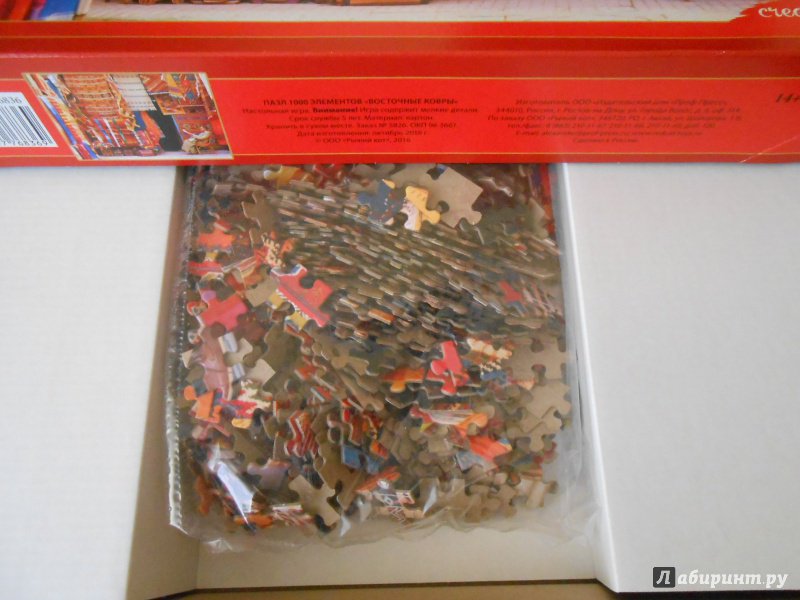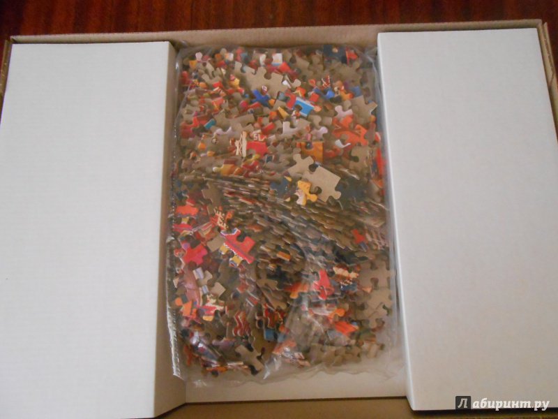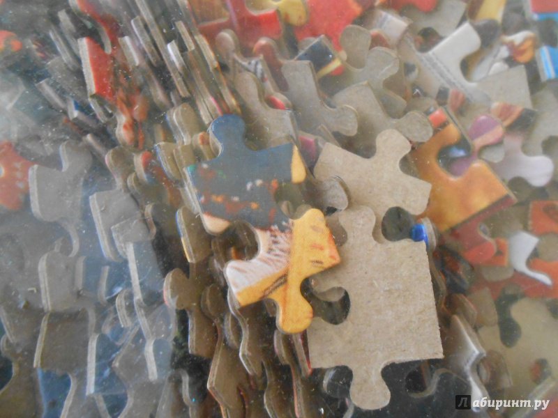 Пазл очень красивый и красочный в собранном виде. Картинка не отражает цветопередачу. Подкачала коробка по качеству( очень тонкая, но с вкладкой из картона).