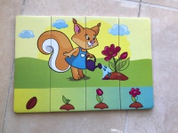 Набор состоит из 2-х картинок. Пазл мягкий, из полимерных материалов, сверху обклеен не толстым картоном, элементы не крепятся друг к другу.