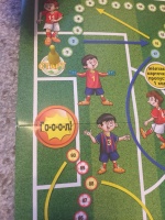 Заказала игру сыну-любителю футбола. Ходилки нам нравятся, но эта особенно) здесь выигрывает тот, кто первый забьет гол в ворота соперника. Поэтому играть нужно вдвоём или вчетвером. Фото игры прилагаю.
