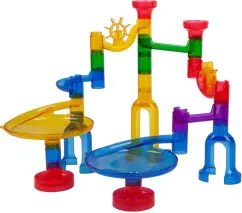 2. Соберите конструктор по своей фантазии. Основная задача - построить горку так, чтобы шарик не застревал, а скатывался вниз по дорожкам и виражам.