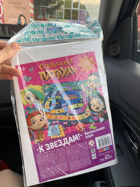 Комплектность: поле с вырезными карточками, 36 карточек, 4 фишки, кубик, правила.
