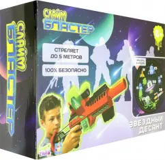 Слайм-бластер – это полюбившаяся всем слизь и крутой бластер в одном наборе! Нужно только загрузить слизь в обойму, взвести затвор, приготовить мишень, которая идет в комплекте с набором, и – в бой! Игрушка 100% безопасна для детей. Легко отмывается от одежды и поверхностей. Бластер стреляет до 5 метров! Слизи в комплекте хватает до 500 выстрелов.