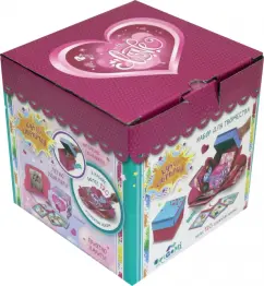 Комплектность: коробки, крышка, коробочка малая, сложенные элементы различной формы, карточки, стикеры, элементы для декора, двусторонний скотч, ленты атласные, инструкция.